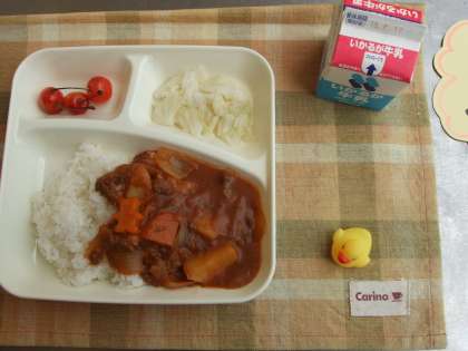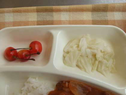 6月26日(金)の給食はハヤシライス、キャベツのゆずドレッシング、さくらんぼ、牛乳です。ハヤシライスはぎゅうにく、じゃがいも、たまねぎ、にんじん、グリンピース、セロリが入っています。こくがあってとってもおいしかったです。キャベツのゆずドレッシングはほんのりゆずの香りがしました。さくらんぼは金曜日の疲れた体に元気をくれるようなさわやかな味です。ごちそうさまでした。