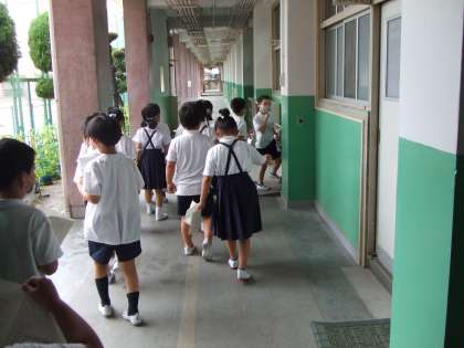 6月30日(火)1年生は学校たんけんで校内をたんけんしています。