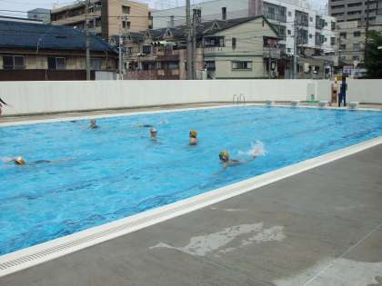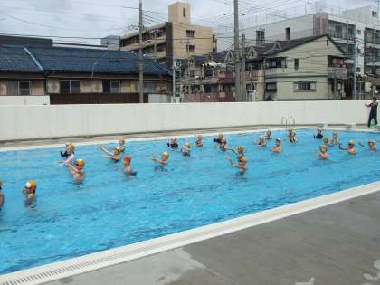7月8日(水)昨夜からの雨も上がり5年生はプール開きです。子ども達は楽しそうに泳いでいます。