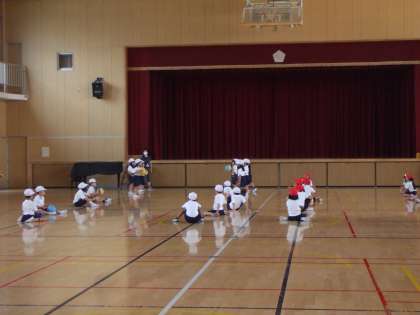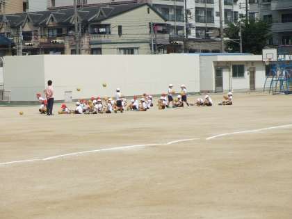 8月4日(火)1年生は運動場と体育館で体育の授業を行っています。