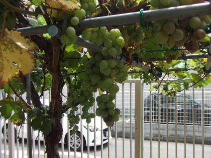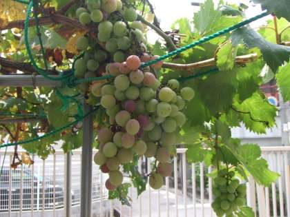8月5日(水)夏本番、暑い日が続きます。学校南側のブドウの棚に今年もブドウが実っています。