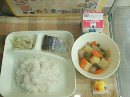9月3日(木)の給食はさごしの塩焼き、豚肉とじゃがいもの煮もの、キャベツの梅風味、ごはん、牛乳です。さごしはやわらかくおいしかったです。豚肉とじゃがいもの煮ものはぶたにく、じゃがいも、ツナこんにゃく、たまねぎ、にんじん、さんど豆が入っていてごはんによく合いいおいしかったです。キャベツの梅風味はキャベツを梅肉で和えています。おいしかったです。ごちそうさまでした。