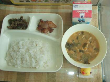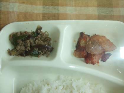 8月4日(金)の給食は鶏肉のてり焼き、みそ汁、なすのそぼろいため、ごはん、牛乳です。鶏肉の照り焼きは甘辛い味付けでごはんによく合いおいしかったです。みそ汁はうすあげ、かぼちゃ、たまねぎ、オクラ、わかめが入っていてあかみそとしろみそでこくがありおいしかったです。なすのそぼろいためはなすびにぶたひき肉とピーマンが入っています。おいしかったです。ごちそうさまでした。