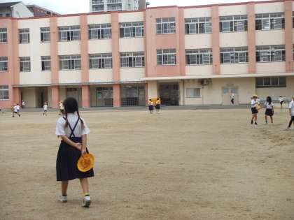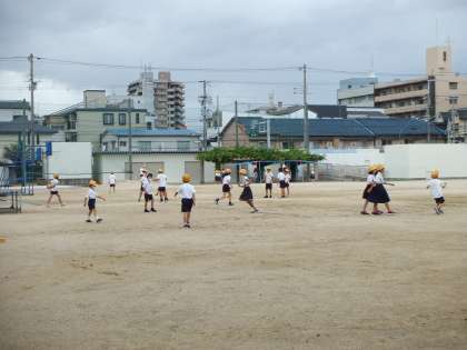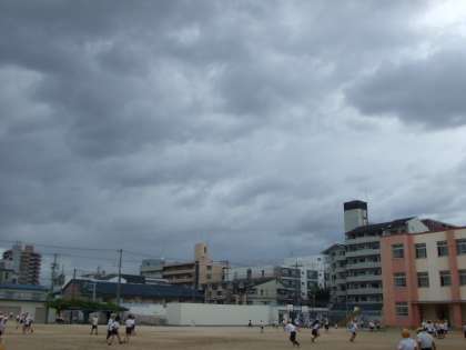 9月7日(月)昨日のからの雨も上がり子ども達は元気に運動場で遊んでいます。台風の影響でしょうか、鉛色の雲が空を覆っています。