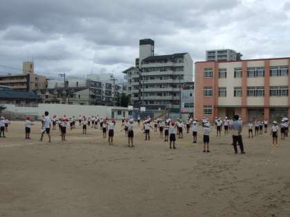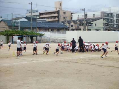 9月7日(月)3年生は運動場でリレーの練習をしています。