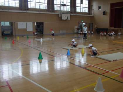 9月9日(水)2年生は体育館で体育の授業をしています。