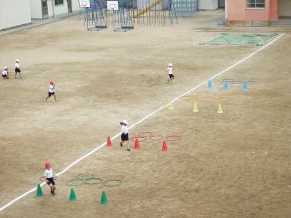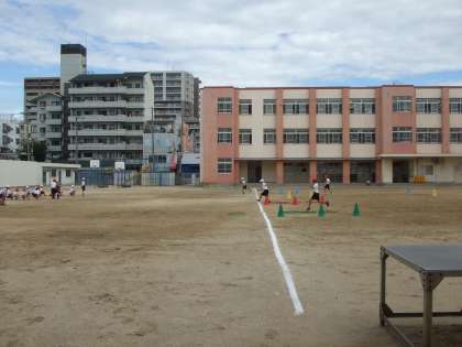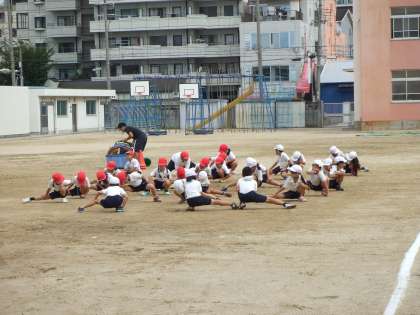 9月11日(金)2年生は運動場で体育を授業をしています。