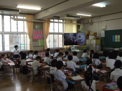 9月17日(木)テレビ児童朝会の日です。子ども達は楽しい時間を過ごしています。