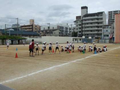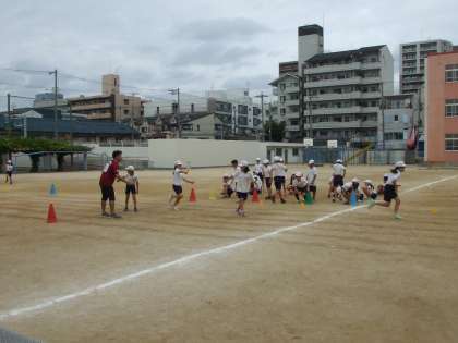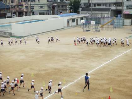 9月17日(木)4年生は運動場でリレーの練習をしています。