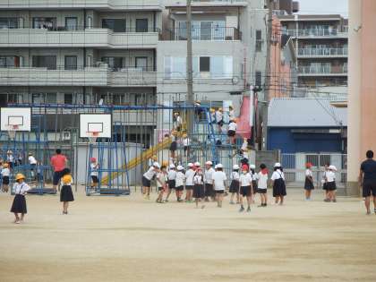 9月17日(木)朝から曇っています。湿度が高く蒸し暑く感じます。子ども達は元気に運動場で遊んでいます。