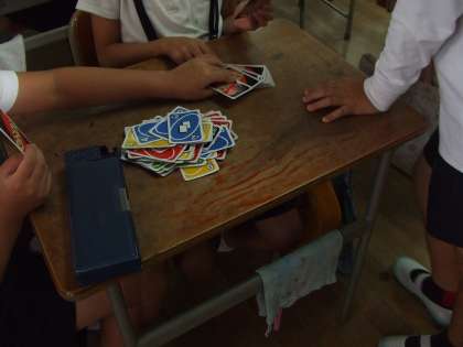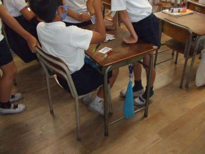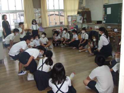 9月25日(金)朝からの雨のため運動場では遊べません。子ども達は教室で楽しい時間を過ごしています。