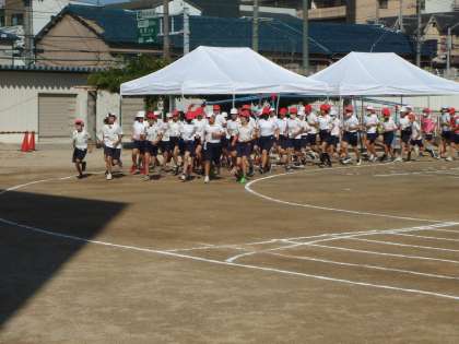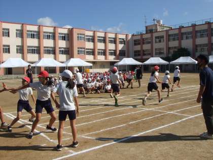 10月1日(木)6年生は体育参観に向けてリレーの練習をしています。