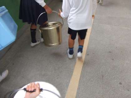 10月8日(木)1年生の子ども達が給食を返しに行っています。