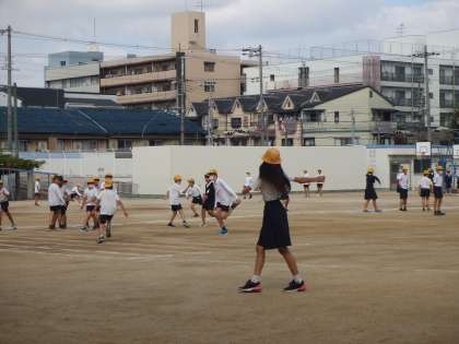 10月14日(火)休み時間、子ども達は元気に遊んでいます。爽やかな秋晴れです。