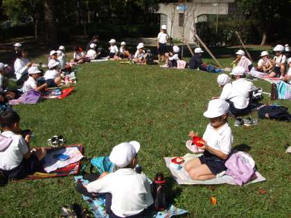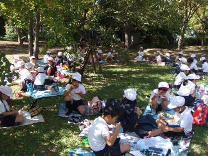 10月15日(木)1年生は爽やかな秋空の下、長居公園へ体験学習に行きました。楽しいおお弁当の時間です。