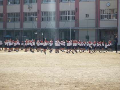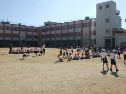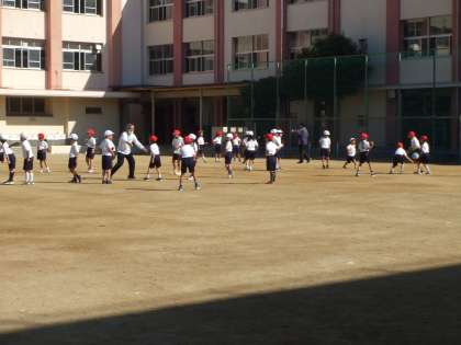 10月27日(火)1年生は体育の授業でドッジボールです。子どもたの歓声が運動場に響いています。
