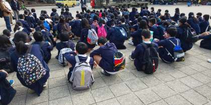 10月29日(木)宮島に到着しました。今から学級写真を撮り昼食です。