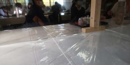 10月29日(木)昼食はカレーライス。食事は距離をとりアクリル板が設置されています。