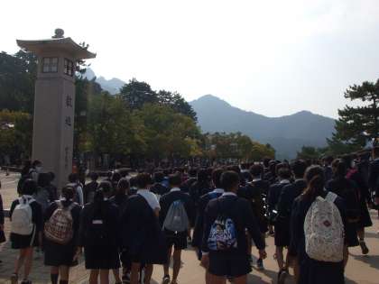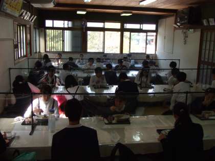 11月2日(月)宮島に到着し、昼ごはんです。カレーライスをおいしそうに食べています。