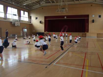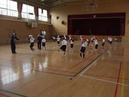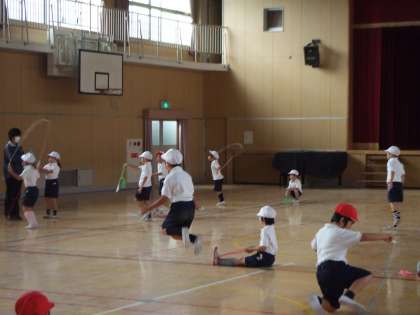 11月11日(水)1年生は体育館でなわとびです。上手にとべました。