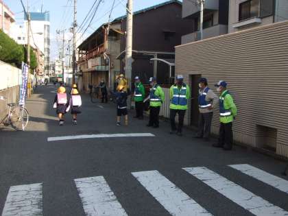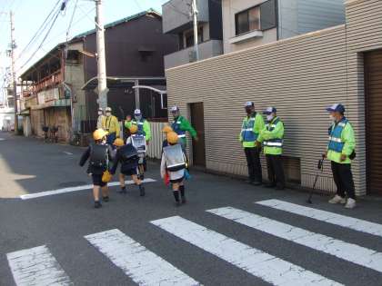 11月16日(月)平野西地域パトロール隊の皆様が子ども達の下校の見守りに来てくれました。