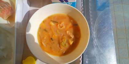 11月18日(水)の給食はあかうおのしょうゆだれかけ、みそ汁、こまつなのいためもの、ごはん、牛乳です。あかうおのしょうゆだれかけはあかうおを甘辛く味付けしています。みそ汁はぶたにく、うすあげ、たまねぎ、だいこん、にんじん、あおねぎが入っていてあかみそ、しろみそで味付けしてありご飯によく合います。こまつなのいためものはけいにくとこまつなをいあtまえています。おいしかったです。ごちそうさまでした。