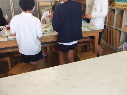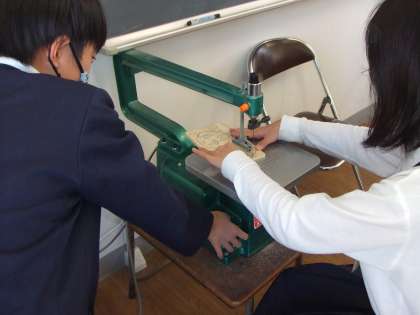 11月19日(木)6年生はテープカッターを作っています。電動糸のこで。丁寧な作業です。