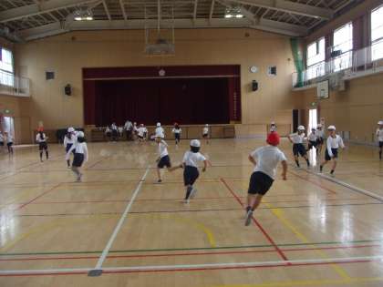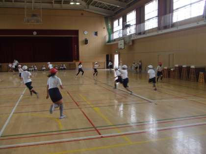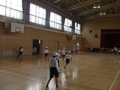11月20日(金)あいにくの雨で運動場が使えません。3年生は体育館で体育をしています。
