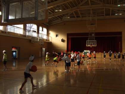 11月26日(金)5年生は体育館でバスケット、シュートの練習です。うまくゴールに入ったかな。