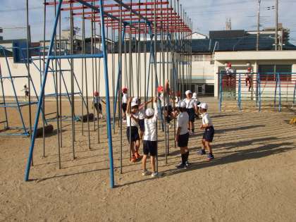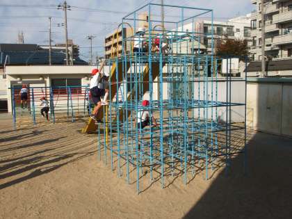 11月27日(金)2年生は体育の授業で遊具を使って活動しています。