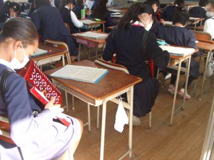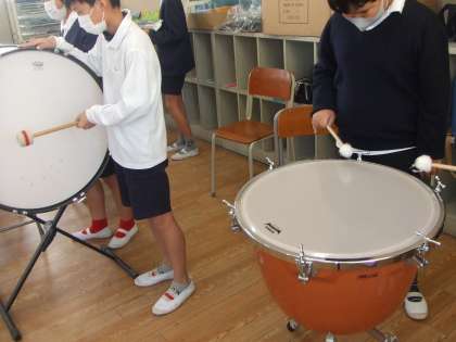 12月2日(水)6年生はパート別で合奏の練習をしています。校長室まで音色が届いています。