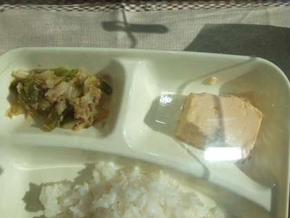 12月2日(水)の給食は卵どうふ、鶏肉と一口がんもの煮もの、野菜のそぼろいため、ごはん、牛乳です。卵どうふふわふわでおいしかったです。鶏肉と一口がんもの煮ものはけいにく、ひとくちがんも、つなこんにゃく、たまねぎ、にんじん、むきえだまめ、しいたけ、が入っています。野菜のそぼろいためはぶたひきにく、キャベツ、ピーマン、が入っています。おいしかったです。ごちそうさまでした。