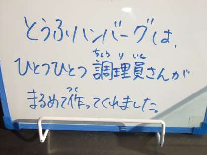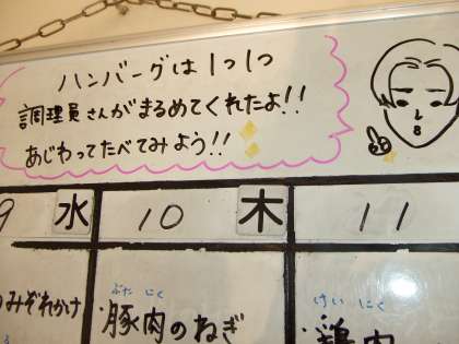12月8日(火)給食室の掲示板です。ハンバーグおいしかったです。