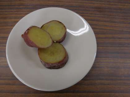 12月11日(金)2年生が育てて収穫したさつまいもがホクホクのおいしいいふかし芋になりました。いただきます。