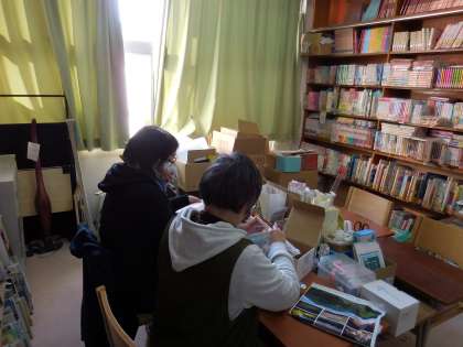 12月16日(水)図書ボランティア「ブックママ」のお母さんが作業をしてくれています。寒い中、ご来校いただきありがとうございます。