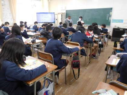 12月21日(月)6年生はC-NETの先生の英語の授業です。C-NETの先生と一問一答です。うまく答えることができたかな。