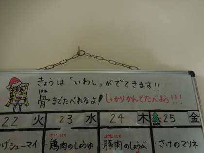12月21日(月)今日は冬至です。冬至は一年のうちで昼の時間が一番短い日です。給食室に冬至について掲示してあります。また、今週で令和2年の給食は終わりです。