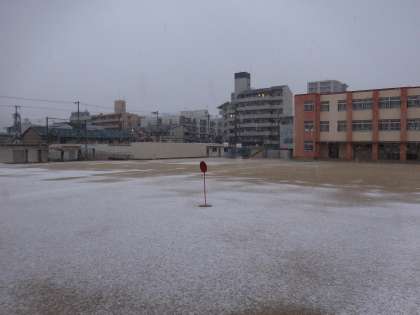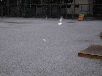 1月12日(火)三連休明けの朝、大粒のボタン雪が降っています。気を付けて登校してください。