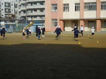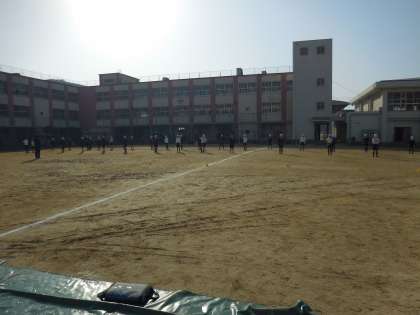 1月14日(木)運動場でなわとびです。少し暖かいですね。