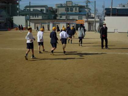 1月15日(金)15分の休み時間です。運動場を一所懸命は走っています。