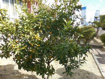 1月20日(水)学校の玄関にきんかんがたくさん実をつけています。