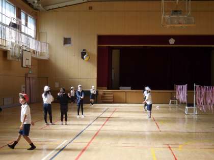 1月25日(月)4年生は体育館でバレーボールです。