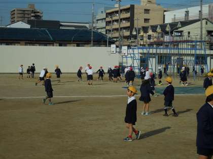 1月29日(木)1年生から4年生が運動場で元気に遊んでいます。