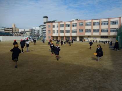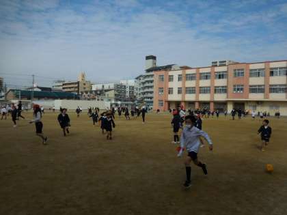 2月1日(月)休み時間、子ども達は元気に運動場で遊んでいます。