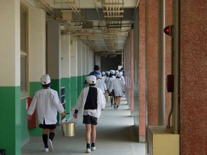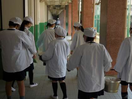 2月9日(火)子ども達は協力して給食を運んでいます。