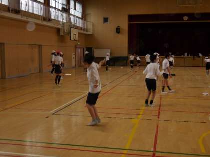 2月26日(金)今日は朝から雨が降っています。5年生は体育館でなわとびを頑張っています。