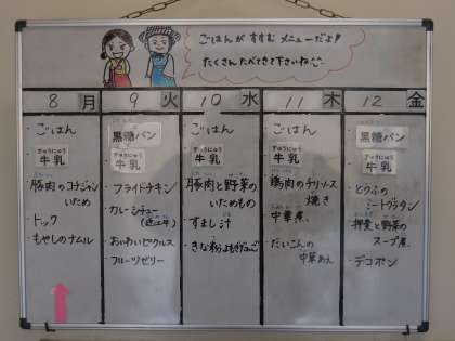 3月8日(月)給食室に今週の給食が掲示してあります。