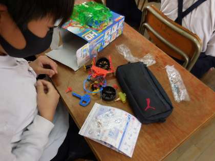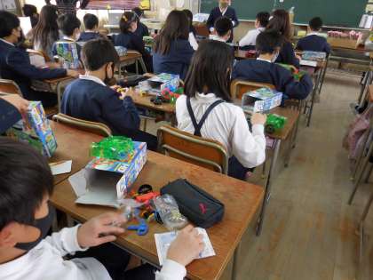3月16日(火)5年生は理科で電池で走る車を作っています。