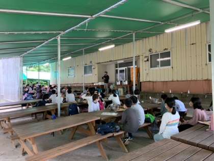 みんな、スタッフの方々からの説明を真剣に聴いています。