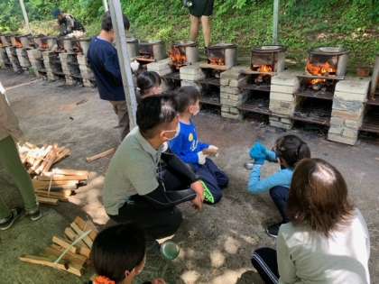 じーっと火の番です。 早く火が通らないかなぁ〜